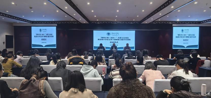 2025年11月1日上午,“国培计划(2025)”内蒙古自治区旗县级小学语文骨干教师能力提升培训结班仪式顺利举行。呼伦贝尔学院继续教育学院党总支书记李健、副院长汪鑫,海拉尔区教育研修中心小学教研室主任由秀芳及全体参培骨干教师出席仪式,为此次培训画上圆满句号。